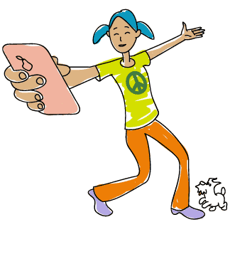 On the right, we'll figure out the mystery behind Foreshortening. How to draw an object positioned closer to the camera relative to everything else in the picture. Just as you see with the girl using her smart phone to take a selfie. Or, how about a snarling raptor leaping up at the camera bearing its great big teeth...Raaar!